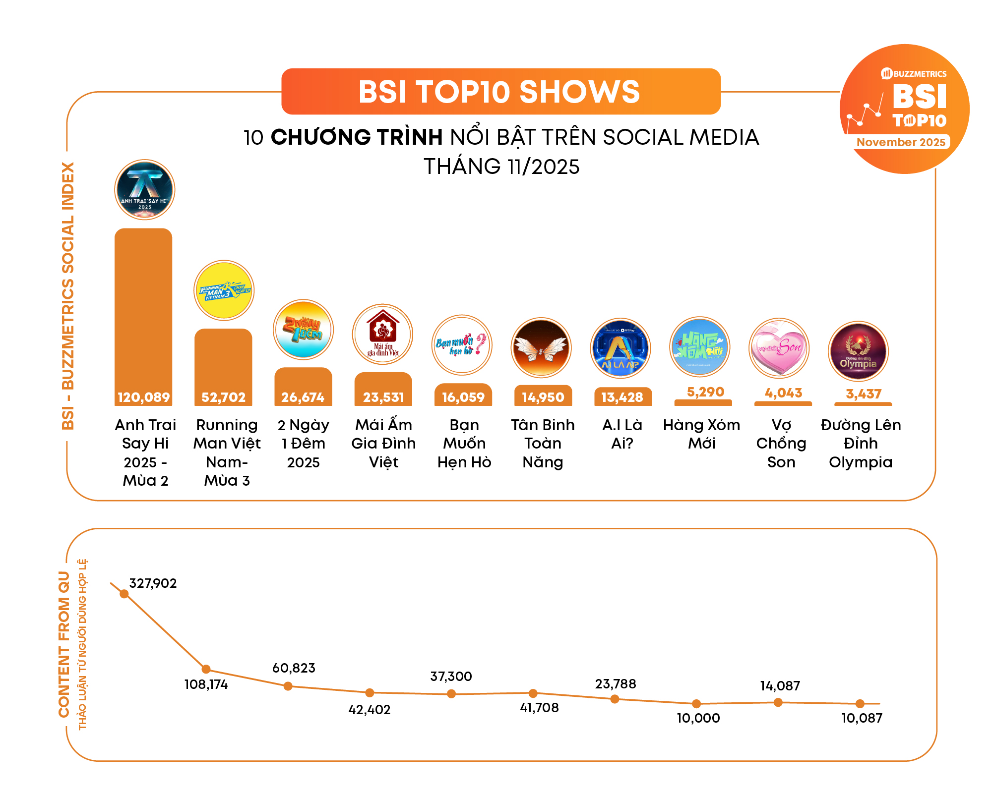 TOP 10 CHƯƠNG TRÌNH NỔI BẬT NHẤT TRÊN SOCIAL MEDIA THÁNG 11/2025