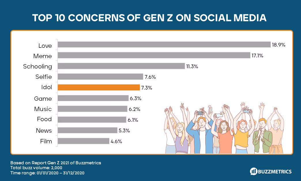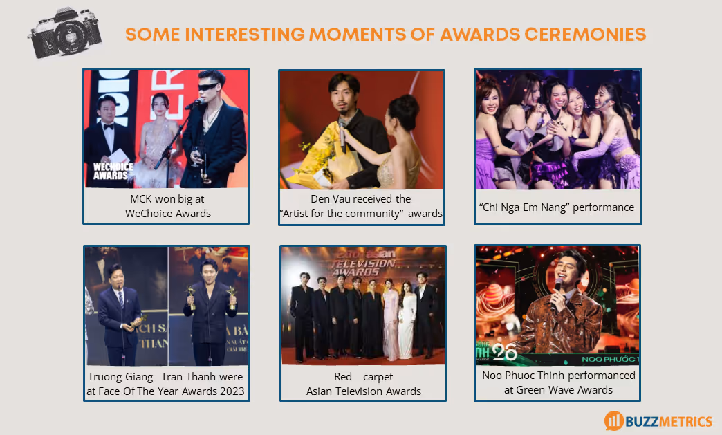 The WeChoice Awards 2023 and Green Wave Awards 2023 - two award ceremonies with the highest BSI score - have garnered notable recognition with Gen-Z faces. At Green Wave Awards, Phuong My Chi emerged as the Outstanding New Face, while Wren Evans was honored in both the Breakthrough Artist and Album of the Year categories. At the WeChoice Awards, MCK stood out by winning in multiple entertainment categories and making it into the Top 10 Inspirational Figures, alongside other Gen-Z such as HIEUTHUHAI and the communication team of the Hoa Lo Prison relic site. Additionally, the WeChoice Awards dedicated a whole group of categories to Gen-Z, such as Z-Slang - Phrase of the Year and Z-Face - Prominent Gen-Z Figure. These elements play a crucial role in attracting the attention of Gen-Z - a demographic that boasts a strong presence on social media.