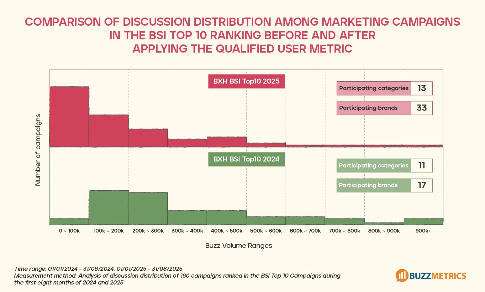 So how have Qualified Metrics tangibly influenced campaign evaluation? Looking at the long-term picture across the first eight months of 2025, since Qualified Metrics were applied to the BSI Top 10 Campaigns ranking, the marketing landscape has become more dynamic than ever. New categories and smaller brands with creative approaches have appeared in the BSI Top10. This provides well-deserved recognition for campaigns that generate "real engagement, real buzz."