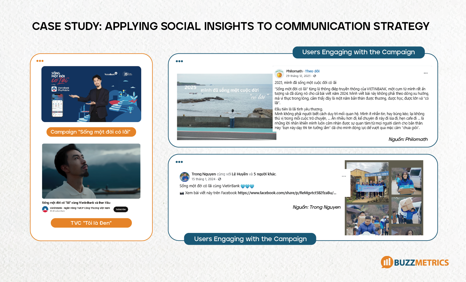 It is clear that Social Research served as a foundational pillar in enabling VietinBank to chart a differentiated path amid intense competition in the banking sector. Rather than continuing to compete in the race for interest rates and rigid financial figures, the bank chose to shift its focus toward building emotional value and fostering human connection. By understanding consumers’ preference for peace of mind, stability, and long-term values, VietinBank was able to redefine the notion of “profit” in a more relatable and human-centered way.