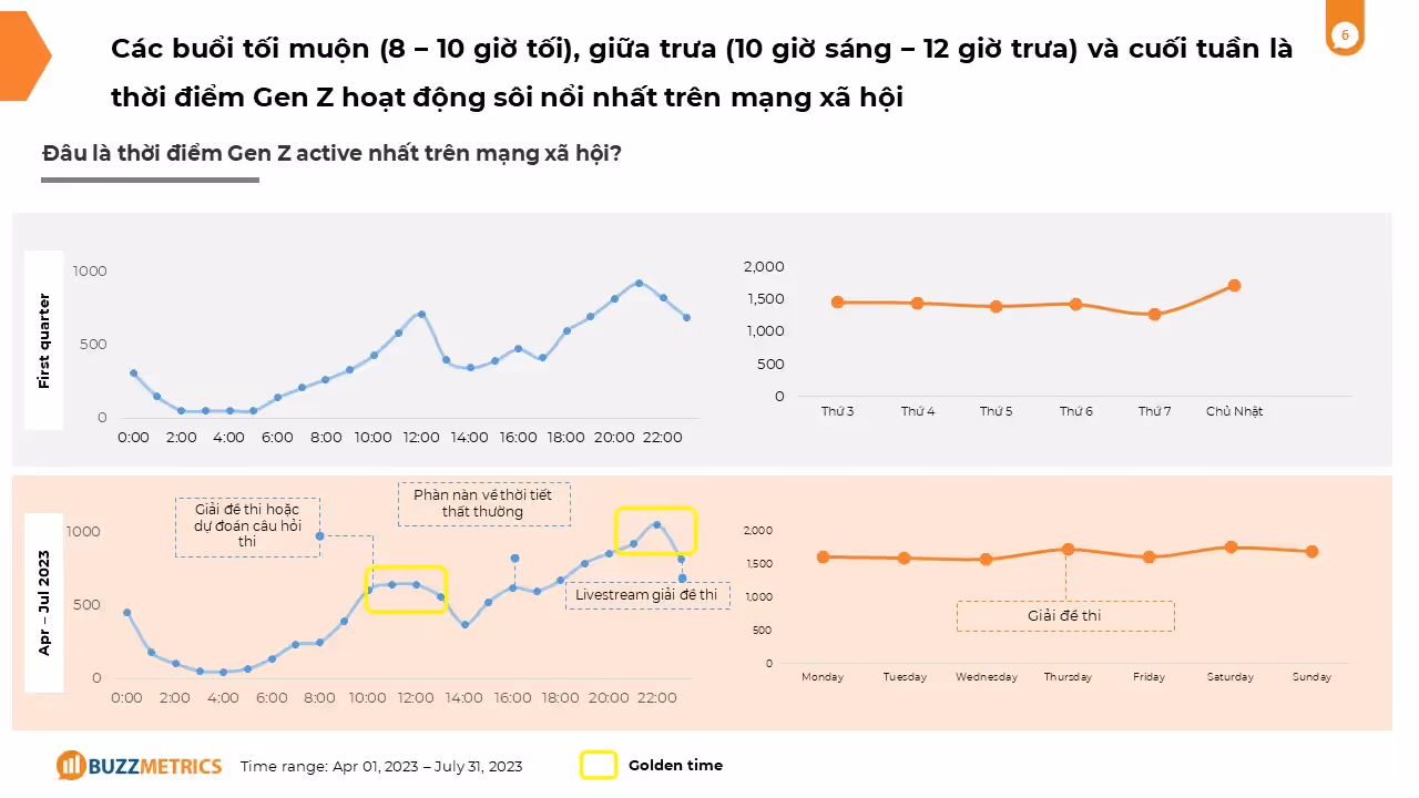 Hiểu rõ khung giờ hoạt động mạnh mẽ nhất của Gen Z trên mạng xã hội giúp các thương hiệu tối ưu hóa thời gian đăng bài, chạy quảng cáo hoặc tổ chức các sự kiện trực tuyến để tiếp cận đối tượng này hiệu quả nhất: