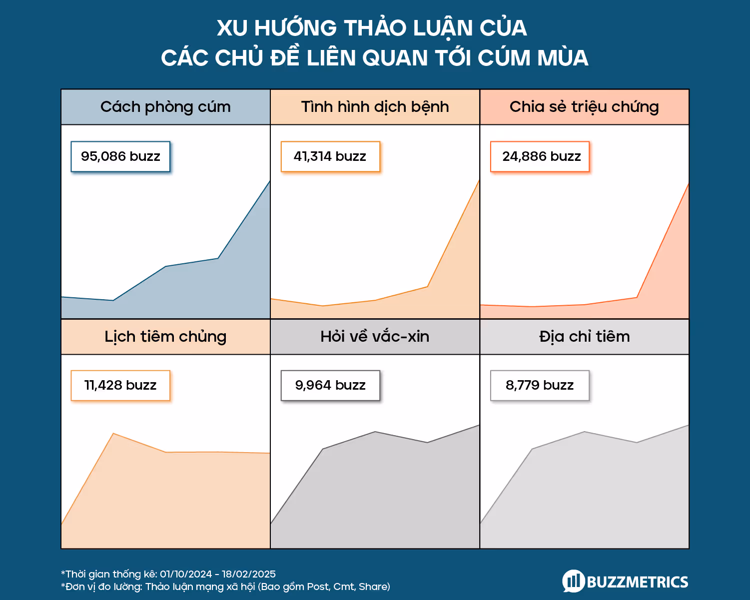 Nếu như trong giai đoạn bình thường, các thảo luận về cúm mùa thường xoay quanh các câu hỏi liên quan đến vắc-xin, lịch tiêm và địa chỉ tiêm chủng, thì trong giai đoạn cao điểm, nội dung thảo luận đã mở rộng đáng kể.